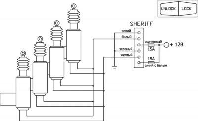 Есть авто с сигналкой Sheriff (серия 9хх) в ней есть родной ЦЗ т.е. две релюшки на открытие и закрытие активаторов дверей. В данный момент во всех четырех дверях стоят двухконтактные активаторы и все прекрасно работает.